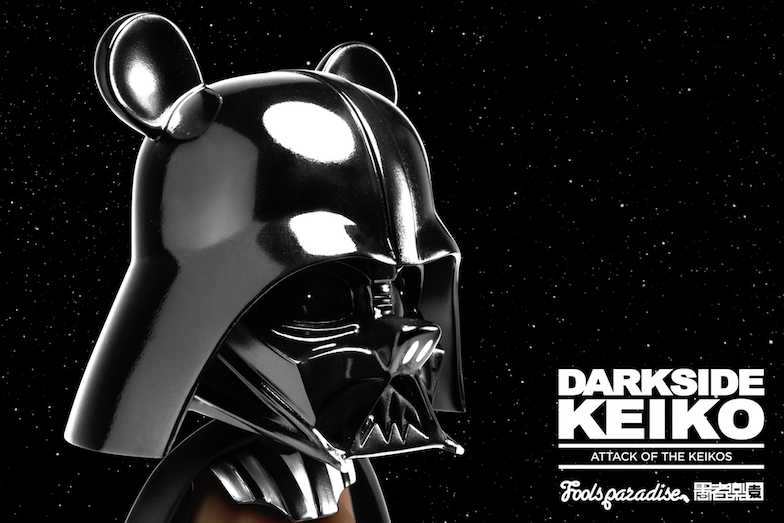 Premier resin toy manufacturers Fool’s Paradise are proud to reveal that the follow up to the awesome Keikotrooper, The Darkside Keiko, will finally be up for preorder tomorrow! Standing at around 12″ tall, the meticulously hand cast and painted figure is due to come with Darth Vader-inspired oversized helmet, cape, and lightsaber. No news on edition size or pricing as of yet, but we’re guessing the stunning piece will be retailing a little over the original Keikotrooper’s price of $220 plus shipping. Head over to the Double Fools blog here tomorrow for all the details on how to secure yours…