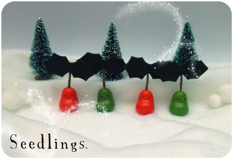 Penny over at Taylored Curiosities kindly shares details of her first festive themed release for 2012, the glittery Christmas Seedlings! Coming cast in both sparkly green and red resin with felt holly leave sprouts, the 1.2″ tall micro figures are accompanied by an originally illustrated Seedling sticker and mini pack of Christmas Tree seeds. All signed, dated and gift wrapped in festive paper and stripy twine, the Christmas Seedlings make the perfect gift for that special someone (even if that special someone happens to be yourself!). Priced at just £12 plus shipping, you can find the little guys on the Taylored Curiosities store right here…
