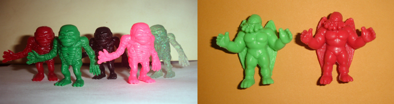 Originally teased way back at the beginning of the month, Eric Nilla has just dropped his latest batch of MOTU (M.U.S.C.L.E’s of the Universe) figures, the special edition 2-Tone Skelitors… Originally created by Solar Color Dust’s Wolf Voigt, the M.U.S.C.L.E x MOTU mash-up has been recast using a special ‘spot’ technique that results in the awesome 2-Tone effect seen above. Produced in an extremely run of just 7 one-off pieces at the moment, the figures can be found on the Nilla store for just $16 plus shipping… Joining Skelitor, Eric has also been kind enough to drop another 2 highly anticipated figures onto the store as well. The recently posted ‘Fish’ Ghoulie re-make and Hellopike’s Kinnikuthulhu both make their debut, available in a huge selection of different colours for just $13 and $15 a piece… Anyone interested is going to need to head over to the store quick, stock has already begun to quickly disappear!