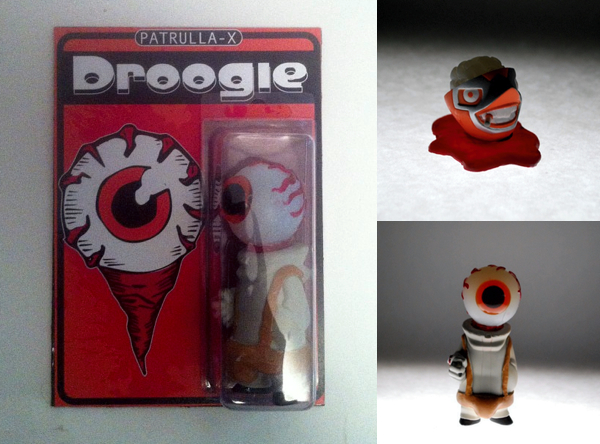 Continuing his onslaught of customs based on Muttpop’s popular Gobi vinyl figure, Manny X is proud to present the awesome Clockwork Orange themed Droogie! Replacing the head with his signature resin eyeball, Manny has sculpted the infamous ‘codpiece’ jock strap, finishing the piece in the iconic black and white colours of the Droog uniform. Once again coming packed with an exclusive hand drawn blister card, Droogie should be available in the Manny X store soon for around $35 plus shipping… Wondering what happened to poor old Gobi’s original head? Well Manny has cleverly turned it into another all-new figure! Featuring a resin brain and gruesome pool of blood, the decapitated head has been painted in a striking mix of orange and silver. No news on pricing for this one, but expect it to hit around the same time as Droogie later this week…