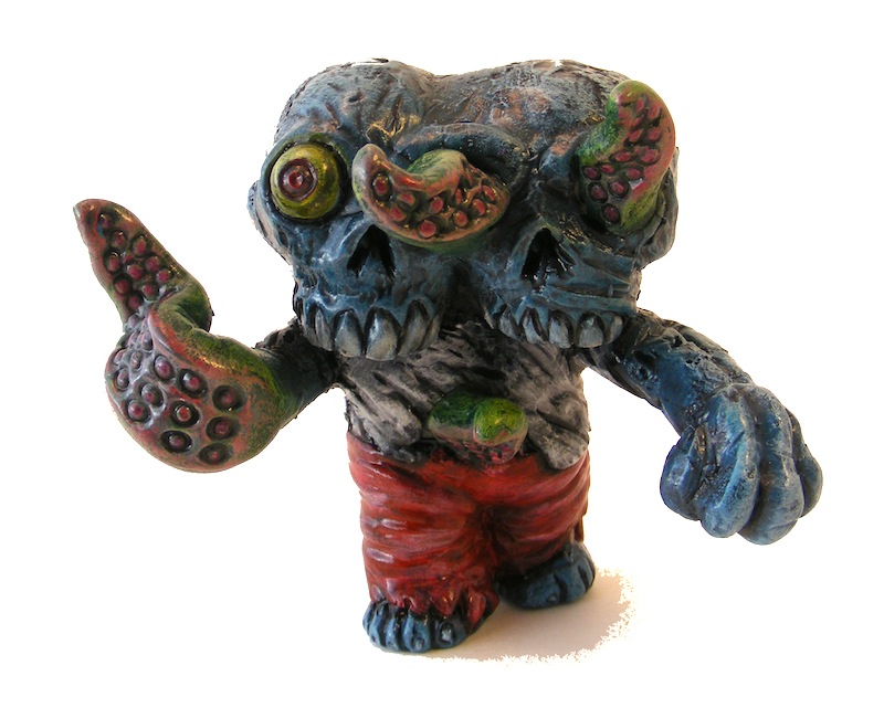 Taking one of our favourite Motorbot resins from the past year, the 2-headed zombie ‘Zed’, Chris of We Become Monsters has transformed the piece into an awesome, aquatic, tentacled nightmare… presenting the Zedtopus! Stripped of it’s original mossy finish, the 2.5″ mini figure comes with a newly acquired set of sculpted tentacles, painted in Chris’signature grimy palette and finished with a definition-popping black rub. Available through the WBM store right here, Zedtopus can be yours for just $35 plus shipping.