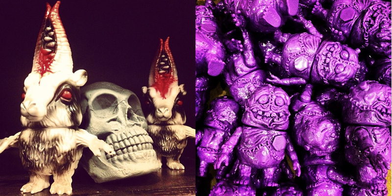 Sofubi giant Splurrt is proud to reveal the latest painted edition of highly sought after Usir figures, introducing the ‘Blood Sacrifice’ edition… Cast in a soft white vinyl replete with macabre black and crimson sprays, the strictly limited run will be dropping alongside a new batch of unpainted purple Cadaver Kids at some point this Saturday. No news on pricing, edition size or drop time as of yet, so be sure to head over to the Splurrt blog here for the full lowdown tomorrow…
