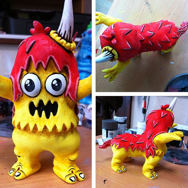 Created as part of OneUp‘s horse-themed ‘Pandemonium’ group show this weekend, Jon over at Rampage Toys is proud to present his latest sofubi custom, the “Evolved” Ugly Unicorn! Looking like a blown up version of Rampage’s recent H.U.S.T.L.E entry, the Ugly Cenicorn, the incredible 4 legged piece has been fashioned from 2 UU sofubis expertly sculpted together with epoxy. Finished in Jon’s instantly recognisable gouache style using the tradition UU colours of yellow and red, the figure will be up for grabs at the show this Saturday, 23rd February… On top of the UU custom, Jon will also be unveiling a super-limited batch of Ugly Horseycon H.U.S.T.L.E’s, so be sure to stay tuned for an exclusive reveal tomorrow!