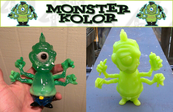 In celebration of their all-new look, Monster Kolor have teamed up with UME Toys and DuBose Art for the release of their very own mascot in resin! Sculpted by our good friend Richard Page over at UME Toys and prototyped/produced by Jonathan DuBose, the articulated figure stands at around 4″ tall, coming complete with removable pen, marker, brush and spray can accessories. Due to come cast in both solid and clear versions for a wide variety of custom applications, the figure will be touching down in the Monster Kolor store soon. Stay tuned for word on pricing and edition sizes as soon as we hear anything…