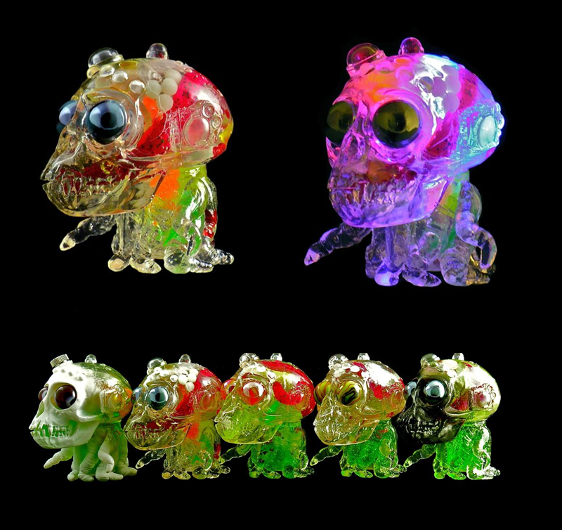 With Rampage Toys having just completed a run of Night Gamer customs for Plaseebo (featured here yesterday), it appears that the artist has returned the favour, as he kindly shares details of his latest Skulloctopus edition, the Tokyo Exclusives… Created for the Rampage Studios gallery/shop space, the run has been limited to just 5 completely unique pieces, each coming cast in clear vinyl with glass eyes, and internal LED units, filled with glow in the dark energy capsules, color gel brain parts, spiders and flies all floating in space slime… Priced at 15,000yen (approx. $157) anyone interested is going to have to head down to the Tokyo based shop in person, this run is strictly off-line this time around!