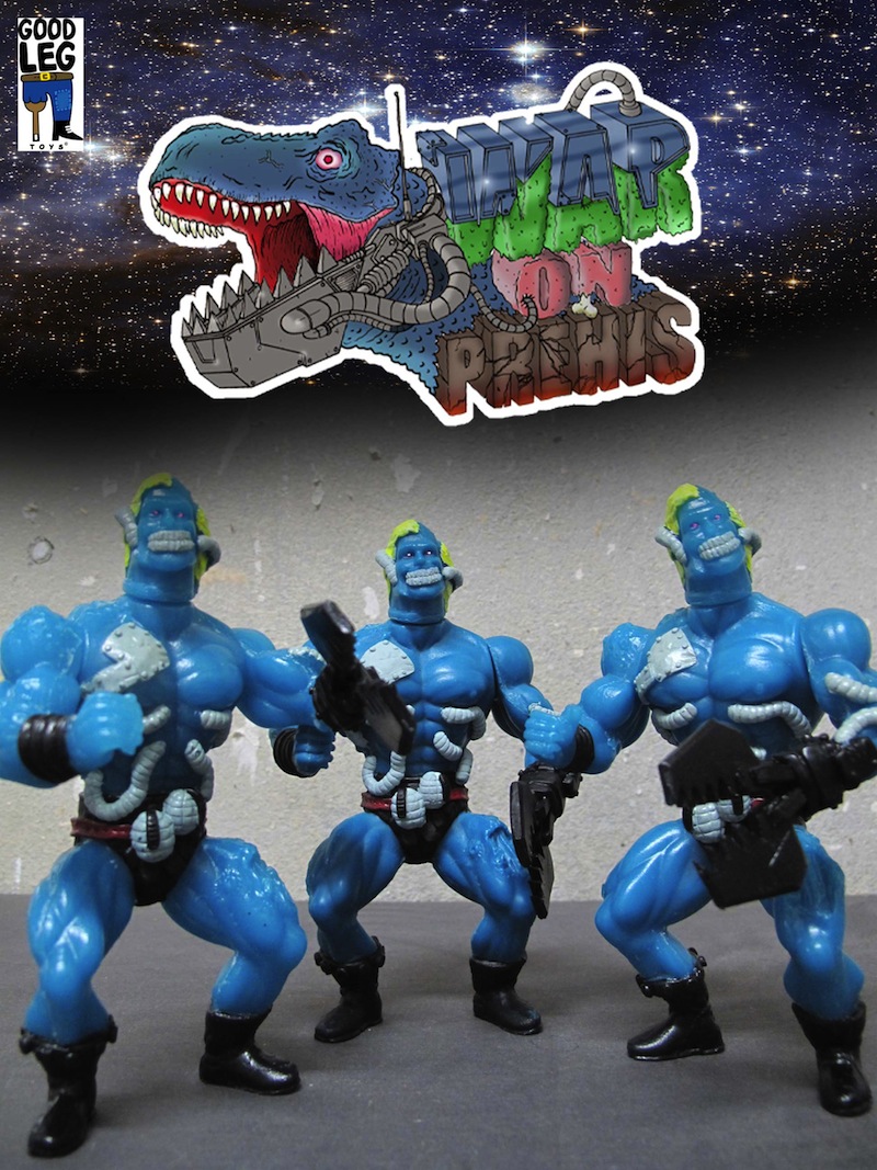 After months of sleepless nights of tooling, moulding, and improving, the guys over at Goodleg Toys are finally gearing up for the release of their debut WAR ON PREHIS release, the mighty Claw Drones! Kit-bashed and intensely re-sculpted from a tight selection of vintage 5.5″ action figures, the neo-vintage piece has been meticulously cast in a retro-blue resin, coming in either painted or blank DIY form. Available at a discounted pre-order price of $48 and $38 respectively, the Claw Drones will be up for grabs on the Goodleg store starting Good Friday, March 29th. The pre-order will be open until April 29th, at which point the price will change to the standard $50 and $40 plus shipping. Head over to our original post here for the full lowdown on the series, and be sure to head over and ‘like’ the official WOP Facebook page for all the latest updates…