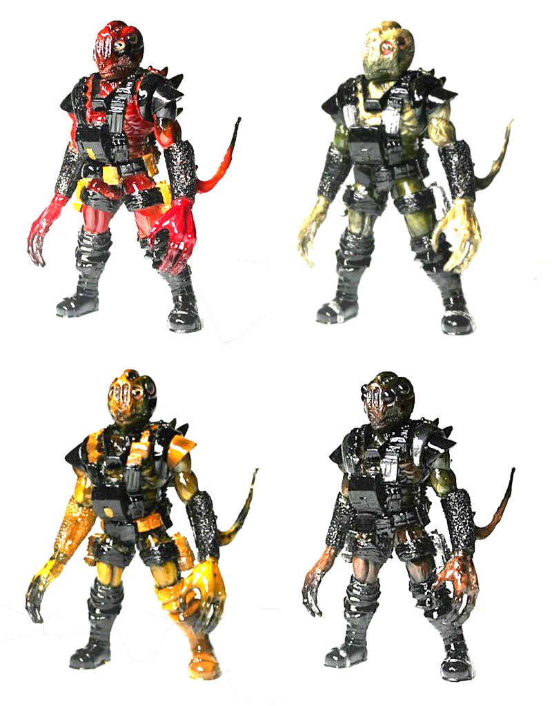 We’ve been closely following the progress of Dubose Art‘s first custom bootleg, Driggs “The Hunter”, since it’s inception a few weeks back, so it came with great pleasure this morning to find the first batch revealed in all their glory… Created for Killer Bootlegs‘ upcoming “Toy Are Us” group art show, the stunning figure has been kit-bashed from a variety of early 90′s ToyBiz X Men figures and an Alien model kit, coming complete with a ton of original sculpting in Dubose’s instantly recognisable style. Due to feature alongside companion piece, the Devil Dog, and fellow action figure sculpt Malrog, the Monster Kolor dyed resin figures will be limited to just 4 pieces for the show, with a limited batch hopefully following shortly after…