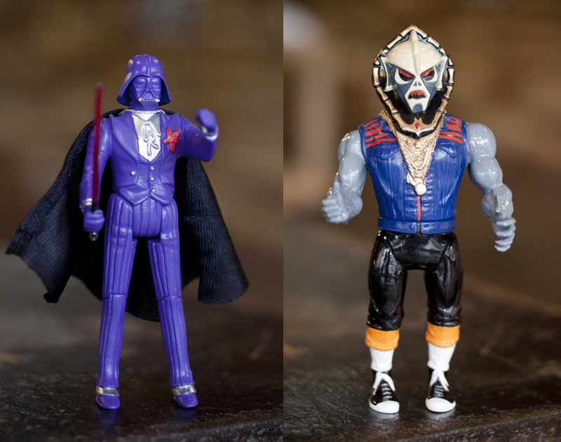 Featuring in Killer Bootlegs’ recent Toys Are Us group show at the Rockford Art Deli, Christopher Cannon from the newly formed Kaboom Toys kindly shares a little info on his latest project, Mash-Ups of the Multiverse… In a similar vein to Goodleg Toys’ WOTU line, Cannon has produced a series of one-off action figure customs from a number of different vintage lines (namely MOTU and The A Team) with the most popular designs heading to resin- the first of which coming in the form of the pictured DarkRider… With a constantly updated selection of figures over at the dedicated Kaboom store (plus a limited number of pieces still available through the Rockford Art Deli store), we’ll be keeping a close eye on the promising artist so you can expect to see more from him soon!