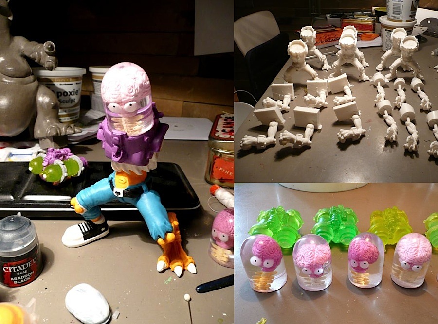 We’ve been following the progress of up and coming illustrator Dr Death‘s debut art toy since our first post a month or so back, so it came with great pleasure today to find the incredible designer action figure is nearing the final stages of production! An absolutely mind blowing debut, the breathtakingly detailed 5.5″ ‘Mutant Bastard’ has (as with Death’s illustrations) been heavily influenced by the 80′s Teenage Mutant Ninja Turtles, in particular, Shredder’s henchman “Mutagen Man”. Painted in a suitably vivid mix of 80s/90s inspired block colours, the piece de resistance has got to be the clear cast dome and backpack- featuring an absolutely hilarious Earthworm Jim inspired brain suspended inside! Limited to just 6 pieces (with 4 already accounted for), Dr Death is offering up the remaining 2 for just $150 plus shipping. Hit him up through the dedicated October Toys forum thread here with any enquiries…