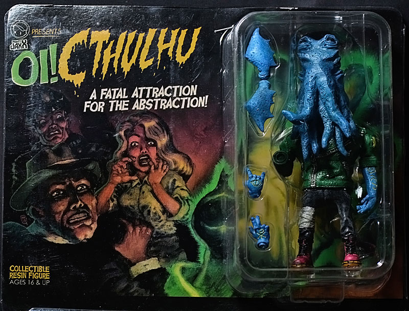 Europe’s premier designer toy outlet Minty Fresh come with their latest exclusive release from Mighty Jaxx, Daniel Yu‘s ‘Oi! Cthulhu’… Heavily influenced by H. P. Lovecraft and infused with a touch of punk subculture, this juxtaposition of mythical creature and present-day stands at 6″ (inches) tall, comes with magnetic interchangeable hands and mini devil wings! Packed in a blister card with an epic backer designed by Ralph Niese, each piece has been painstakingly hand painted in a Mintyfresh exclusive blue and green. Limited to an edition of 50 pieces this time around, the figure is now available directly through Mintyfresh, coming signed by Daniel for €54,95 plus shipping…