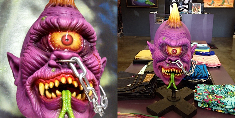 Mishka have once again teamed up with Atomic Vomit for the second run of L’Amour Supreme‘s Cyco Simon mask, presenting the must-have Horn Head edition! Sprayed in a gorgeous mix of neon purples, greens and yellows, the absolutely stunning latex-cast piece is unfortunately missing the furry maine of the original… a detail easily forgivable when you see the awesome nose ring and chain that has taken it’s place! Available through pre-order right now by e-mailing Mishka directly at gregmishka@me.com, the 1:1 scale mask can be yours for just $350 shipped…
