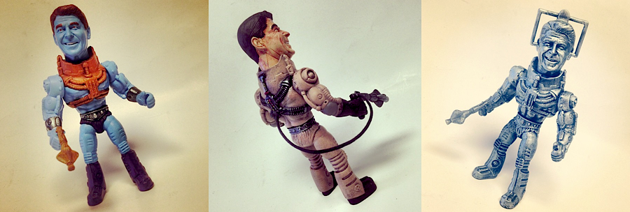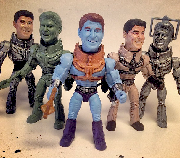 Brandon Michael Barker over at ManOrMonster? Studios has resurrected the popular RayGun custom bootleg for a series of exclusives dropping at HeroesCon later today! Kit-bashed from a variety of action figures including a MOTU 200x Man-E-Face and an oversized Reagan head, the figure has been hand cast in resin by Barker, featuring MoM? compatible neo-mag joints in the waist and shoulders. Available in a number of hilarious strictly limited colourways including a Faker inspired “Fay-Kun”, the Cyberman “Ctrl/Alt/Del”, and our favourite, “Bedtime for Buster”, bearing a striking resemblance to the brains behind the Ghostbusters, Egon… Edition sizes and pricing is still forthcoming, although we’ll be keeping our fingers crossed that at some make it to the MoM? web store next week for around $80 plus shipping (TBC).