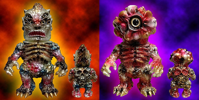 Kaiju heavyweights BLObPUS and Mutant Vinyl Hardcore have teamed up once again for yet another earth-shattering release… the 6 Eyed Ghoul and Doku Head DX set! Featuring the standard 1-eyed Doku head along with an all-new (you guessed it!) 6 eyed sculpt, the pair of Sludge Demon mash-ups are due to come cast in GID soft vinyl, expertly sprayed by BLObPUS in a variety of metallics. Up for pre-order right now through the BLObPUS store, the duo are available singularly for 9,800yen ($99) or 19,400 ($196) for the set. Deadline for pre-ordering is June 14th, with final payments to be made by June 21st. Expect shipping on these guys to take place late July…