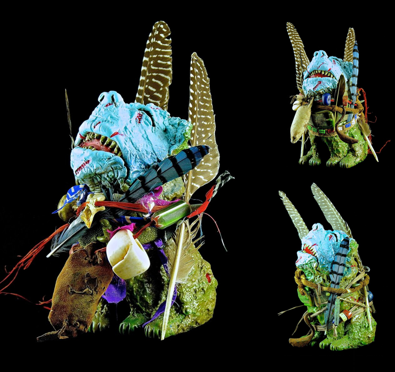 The mysterious Kaiju Coup teams up with Medicom Toys for the latest Warui Inu sofubi… the “African Fetish” US edition! Standing at around 6 1/2″ high, and cast in a marbled green and olive vinyl made in Japan, each figure has been adorned with a unique collection of authentic vintage African beads, amulet’s and talismans collected from Africa in the 1960’s- with no 2 alike! Limited to an edition of 6 pieces priced at $220 each, these will of course be offered up via lottery in the usual way. To enter, be sure to send your NAME, ADDRESS, and EMAIL to kaijucoup@gmail.com before the entry deadline on Monday, June 24th… Good luck!