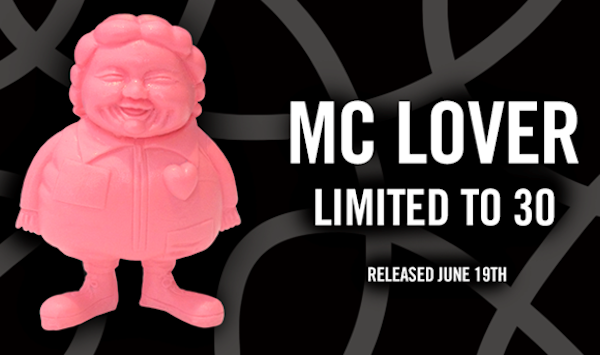 Ron English comes with his latest incarnation of the iconic MC Supersized character, as he proudly presents the resin MC Lover! Originally making an appearance at Clutter’s recent ‘Thought Bubble’ show in a variety of clear colours (of which a limited batch are still available here), the hand cast piece comes in a bubblegum pink this time around, featuring a tiny sculpted heart on the figures breast. Limited to an edition of 30, each signed by the artist, MC Lover is available on the Popaganda store right here for just $40 plus shipping…