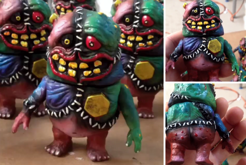 We bring you yet another reveal from Skinner today courtesy of the new Instagram video feature… a full painted run of custom Cadaver Kids! Featuring what looks like 10 (TBC) of Splurrt‘s highly popular sofubi mini, each has been expertly sprayed in a patchwork mix of flesh pink, green and blue V Color sprays with white, black, red and yellow detailing. Release info is still thin on the ground at the moment, so we suggest keeping an eye on the Splurrt site for more details soon… In the meantime, you can check out the 15 second reveal vid in full right here!