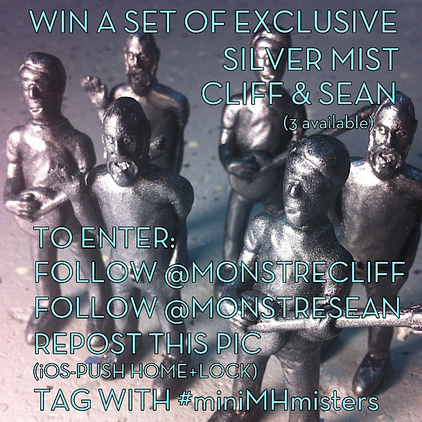 Bowing to the tons of requests from fans last week, the guys over at Monstre Hero are proud to present their first ever Instagram competition! 3 sets of their self portrait Cliff and Sean figures are up for grabs, each coming cast in a comp exclusive ‘Silver Mist’ coloured resin. All you guys have to do to be in with a chance is to head over to the @monstrecliff and @monstresean IG feeds on your phone and click ‘follow’, then repost the above pic (linked here) and tag it #miniMHmisters. The pair will be picking winners on Friday, June 28th, so be sure to get your entry in ASAP!