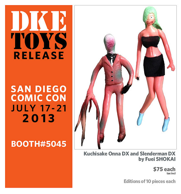 The ever-elusive Fuei Shokai teams up with DKE Toys for their second year in a row at SDCC, coming with exclusive, fully painted DX variants of both Slenderman and Kuchisake Onna! Cast in a pink Japanese soft vinyl, the super-creepy pair have been given a number of contrasting sprays, finished with black and white hand painted detailing. Limited to just 10 of each this time around, Slenderman DX and Kuchisake Onna DX will be available from the DKE booth for $75 a piece.