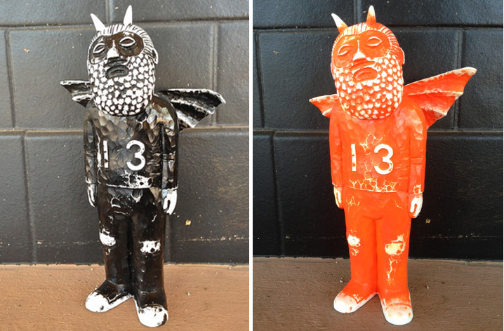 Originally debuting at SDCC a couple of weeks back, Mike Egan‘s latest sofubi, Lucky, is now finally up for grabs at Lulubell Toys! A follow up to last year’s extremely popular Bones, the 8″ tall figure has been cast up by Grody Shogun in the same original colourways, a neon orange and black, each coming complete with a beautiful white dry brushed finish. Limited to an edition of 100 total for both colours, Lucky can be picked up right here for just $60 plus shipping…