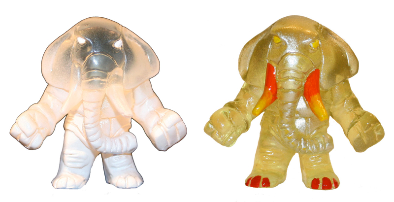 Ahead of the anticipated Keshi Version release later this month, Daniel Smith aka turboPISTOLA is proud to present his latest 2 custom Elephantos minis… Frosted and Devious! Cast in a beautiful crystal clear resin, Frosted has been hand sprayed with a white gradient, whilst the trans-yellow Devious comes with silver sprays and firey hand painted details. Priced at just $30 each, the pair are up for grabs in the turboPISTOLA store right now. Stay tuned for the full details on THAT Keshi Version in the coming weeks!