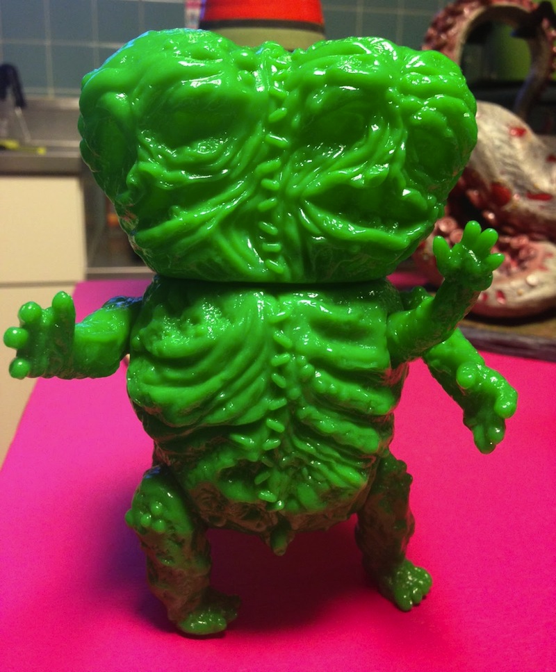 Originally revealed here as a prototype back in April, Splurrt‘s latest monstrosity, the Cadaver Twins, have just received their first successful test pull! Pictured here in a green soft vinyl, the beast stands at around 6.5″ tall, coming with an impressive 7 points of articulation. News on a release are still pretty thin on the ground at the moment, but we’ll be keeping our fingers crossed that an initial unpainted run will be offered up via preorder on a similar basis to the Apex Diggler soon. Keep track of the Splurrt blog here for more pics and info over the coming weeks!