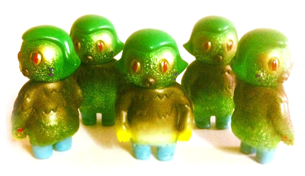 Shane Haddy over at Hints and Spices is proud to present his latest batch of custom sofubi minis, the adorable Swamp Girls! An ingenious mash-up of Haddy’s own Suity-Chan and Kowailla figures, the edition of 5 have been cast in a beautiful green glitter soft vinyl (with a GID chase!), sprayed in a mix of gold, yellow, blue and green with red detailing. Created for Adelaide-based bar Four Doors Plus One‘s opening exhibition, Asterism*, this evening, we’ll be keeping our fingers crossed for more Suity/Kowailla customs in the future. Check out the Hints and Spices IG feed here for a closer look at the figures…