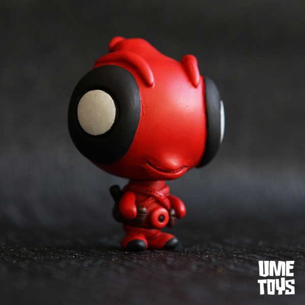 In between prepping the huge “Back 2 School” sale (more news tomorrow) and the release of Scamwave, Rich over at UME Toys has been hard at work on yet another must-have resin… the Mini Merc! Based on everyone’s favourite fourth wall shattering anti-hero Deadpool, the adorable little mite is due to come cast up in resin for a limited batch soon. Rich tells us that the figure will be the first of the UME family to feature neo-mag articulation (in the neck this time around)- here’s hoping it’s not the last! Keep track of the UME blog here for release details in the coming weeks…