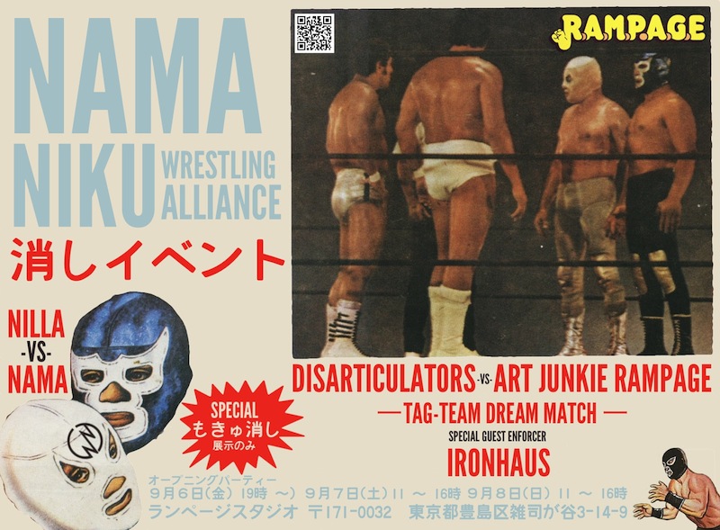 With Rampage Studio‘s first keshi show kicking things off with a bang at the beginning of the year, Nama Niku and the NNWA have been asked back for a very special 3 day show! Featuring awesome keshi displays from Nama Niku, Mokyukeshi, Rampage Toys and our very own Tru:Tek, these will be joined by exclusive releases (original sculpts only!) from Nama Niku x Ironhaus, Eric Nilla, the Disarticulators, plus Kinnikuman t-shirts and artwork from Tokyo’s very own Art Junkie! Opening Friday, September 6th, Nama Niku will be on hand throughout the course of the show to sign figures, and more importantly, talk keshi! Stay tuned for exclusive reveals closer to the event…