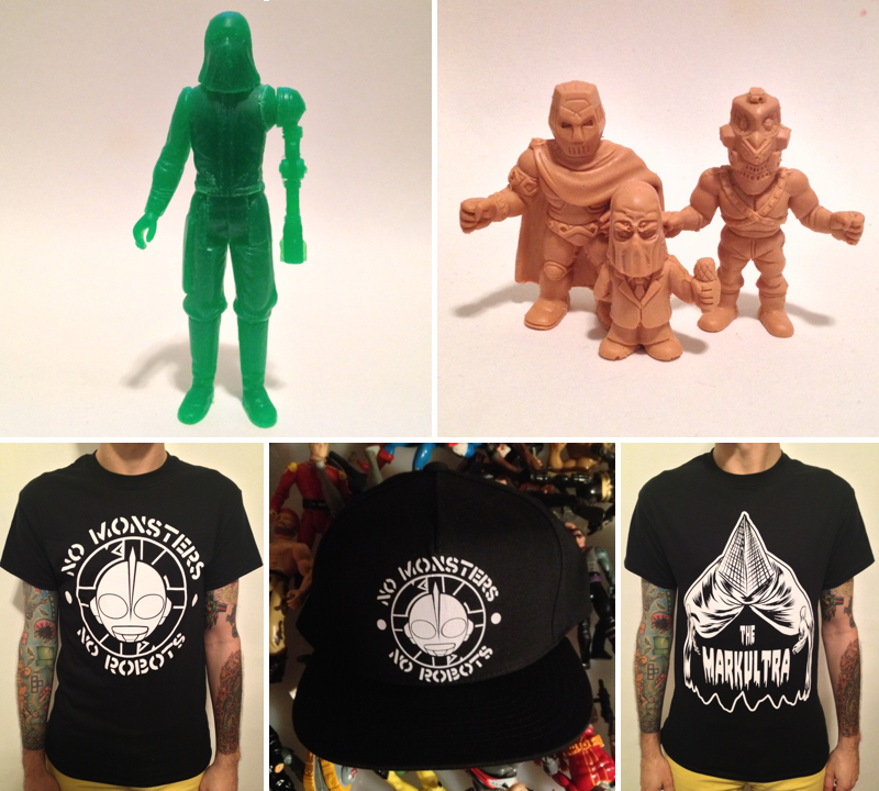 After a brief hiatus, The Mark Ultra returns with 2 of his most popular releases, Intruder and U.L.T.R.A, in all-new, previously unreleased colourways! Kit-bashed from a mix of vintage GI Joe and Star Wars figures, the 3.75″ Intruder has been cast in a clear emerald green resin, whilst the 3 pack of M.U.S.C.L.E bootlegs have finally seen the light of day in their true colour, keshi-gom flesh! Priced at $18 and $15 respectively, the figures will be touching down in the Mark Ultra store today (August 15th) at 10pm EST… But that’s not all! Joining the toys, The Mark Ultra will finally be unleashing his long awaited snapback cap and t-shirt designs. Priced at a wallet friendly $20 each, limited number of each will be available in a variety of sizes…