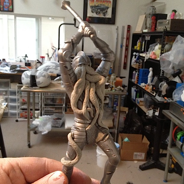 The mighty Skinner turns his hand to the world of custom bootlegs once more, revealing his latest piece, the Cthulhu Knight! Featuring a ton of Lovecraftian tentacles sculpted on top of a battle damaged vintage knight figure, the awesome creation is due to come cast in resin by none other than LiLJAPAN’s Oni Creations (producers of Kozik’s most recent resins). Aside from the reveal, news on the release is still pretty thin on the ground at the moment, so be sure to keep track of the Skinner IG feed here for more developments soon…