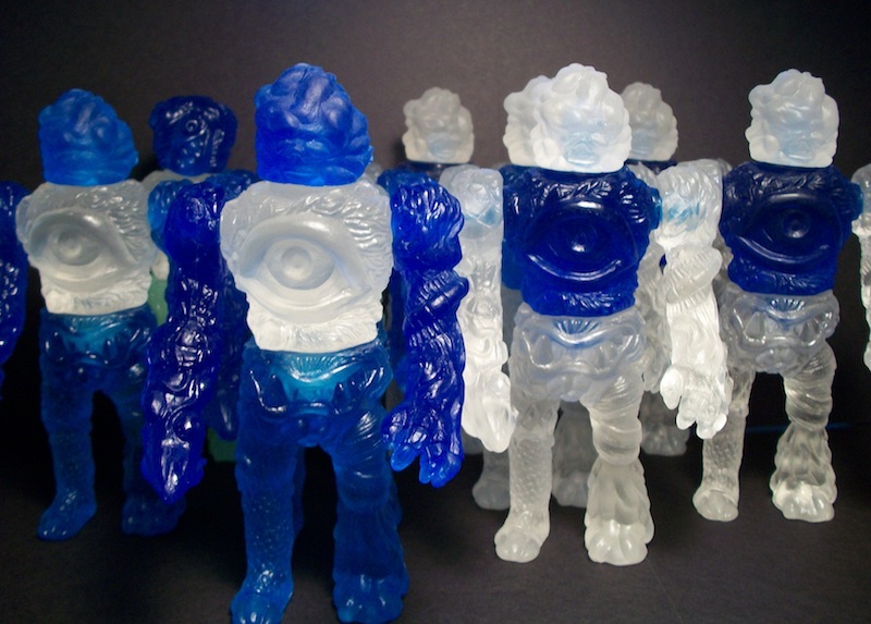 Acolorfulmonster has teamed up with Baltimore’s Novelty Haus for the debut of his latest resin kaiju beast, the Chimeron! Entitled the “Glacier” edition, the initial run has been cast in a mix of clear blue and white parts, standing at an impressive 6″ tall with 4 points of articulation at the head, waist and arms. Limited to a run of 10 with one alternate head “chase” (check him out in the back row!), the “Glacier” Chimeron army will be touching down in the Novelty Haus store today (9/14) at 5pm EST. Pricing TBC…