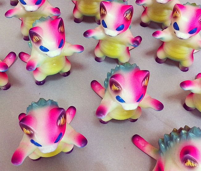 Joining the previously posted Cannibal Gyudome and Nekos custom keshi, Rampage Toys have teamed up with Konatsu for another huge Superfestival 63 exclusive… fully painted runs of both Shibara and the uber popular Negora! Cast in a glow in the dark soft vinyl, the pair are currently undergoing Rampage’s trademark spray work, coming in a mix of neon and metallic VColor with hand painted detailing. Dropping at the event on September 29th, we”l be holding out for a few on the online store soon after… Keep track of the Rampage IG feed here for a full reveal of the figures soon…
