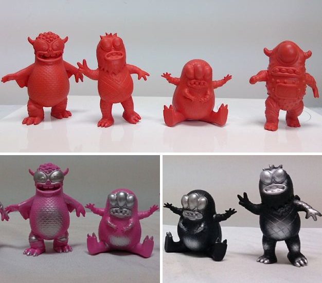 Judging by the recent postings from Unbox Industries, we’re set to receive new colourways of Jeff Lamm’s Greasebat Gummi Playset! Whilst we’re guessing the top “Samhain” orange will be reserved for a special Halloween release, we’re more interested to see what happens to the other hand sprayed versions revealed. The Hot Pink with Silver accents certainly suggest that at least one set may be making an exclusive appearance at the Clutter NYCC booth… we guess time will tell next week!