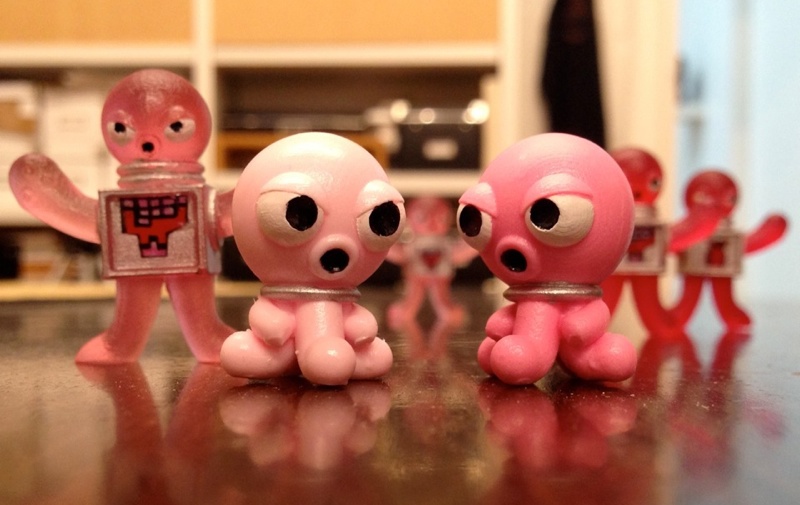 Tako-Terrians// They’re back! Originally dropping last year, the Takos return without their Cube-Suits! Cast in a pink resin with a silver highlight painted around the control collar, the chunky 1″ figure will be available online and at the Onell booth, with around 20 being made available for just $10 each.