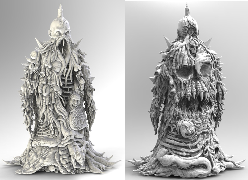 “Following the brilliant working relationship we (Unbox Industries) had with Skinner we wanted to keep the momentum and start work on a series of new projects. After some consultation, Skinner proposed a series of characters for a new “Skinner Universe” series. Three characters are already in development for release in 2014 but Lolgolth Gnazgoroth really pushed the Unbox team like never before. “Lolly” took over three months to develop under close consultation with Skinner, the digital model is our most complicated sculpt ever. With nearly 2gb of digital data, Lolly managed to break the state of the art rapid printer we use!