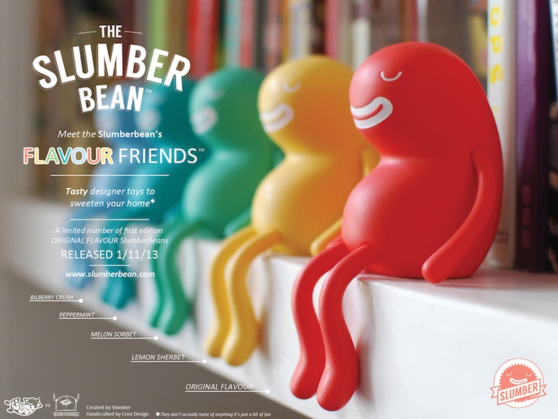 Creo Design has teamed up with illustrator Sam Hadley aka Slumber for the release of their latest series, the SlumberBean ‘Flavour Friends’! Originally created as a character for Slumber’s ongoing series of illustrated prints, this 3D version, realised by Creo’s Chris Alexander in his unique PU resin, has had the honour of featuring in the Pictoplasma Character Compendium, exhibiting in Bristol, Berlin and Madrid. With a total of 5 different ‘flavours’ to be released over the coming months, Creo will be kicking things off with ‘Original’ red, dropping in the SlumberBean store on Friday, November 1st at Noon GMT. Limited to an edition of 20 (10 of which will be held back for a future date), each 5″ tall resin figure comes packed in a bean can with custom label for just £30 plus shipping…