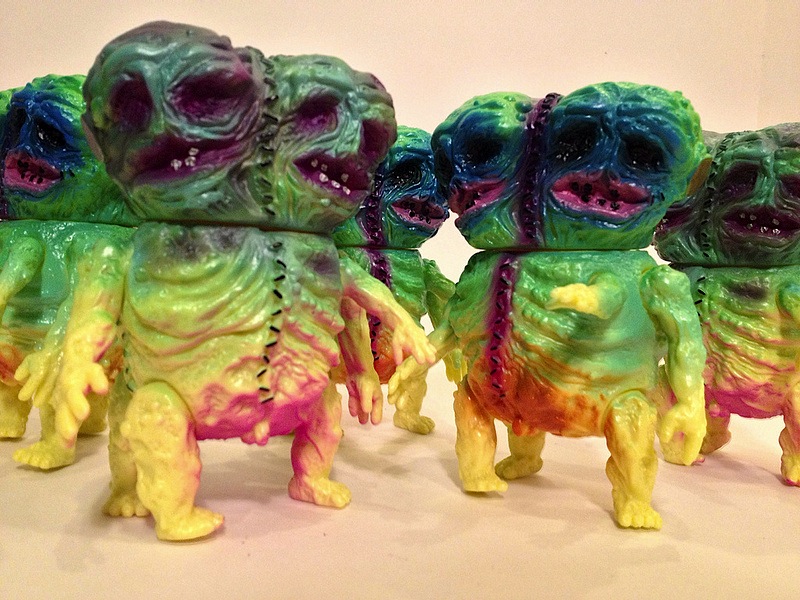Whilst he may not be there in person, Splurrt has just revealed that he will have not 1, but 2 Cadaver Twin micro runs up for grabs at Designer Con next week! Cast in a bright yellow soft vinyl, the pair have been adorned with a number of Hawaii-style sprays, complete with alternating blue and purple eye sockets. To be sold via the Toy Art Gallery booth for just $125 each, we’re still not completely sure how they’ll be offered up, so be sure to make your way over to the booth pronto to avoid disappointment!