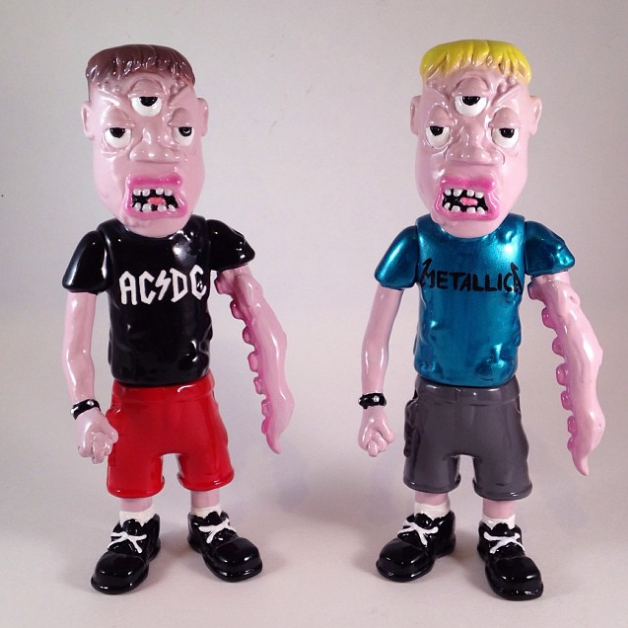 Joining the raft of custom kaiju and sofubi he’ll be carting to Designer Con, D-Lux has just revealed quite possibly our favourite pieces yet… the Beavis and Butthead Sewer Creeps! Once again taking on Coma21‘s much loved sofubi in style, D-Lux has faithfully recreated the pair’s instantly recognisable ACDC and Metallica shirts, complete with red and grey shorts, and of course, shocks of brown and blonde hair. Due to be sold as a one-off 2 pack, Beavis and Butthead will be up for grabs via booth #315 for an undisclosed sum…