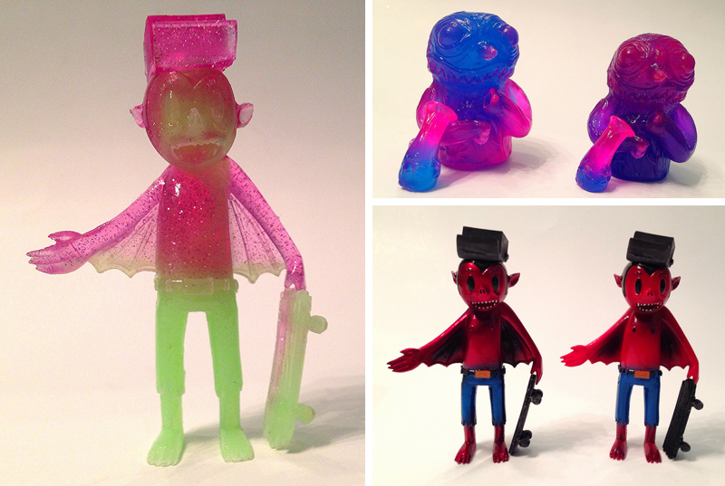 Black Light Sludgies// Marking the third outing for Blurble’s psychedelic, nuclear tea drinking beastie, Sludgy has been cast in a black light reactive clear neon pink and blue swirl. Limited to 5 pieces, each comes packed with Sludgy’s trusted tea flask for just $15 each.