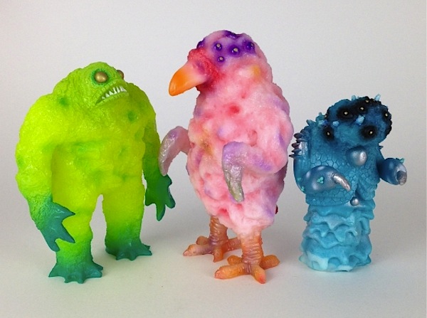Famed for his awesome resin kaiju Rhaal, Barry Allen aka Gorgoloid has just revealed that he will be taking part in Monster Kolor‘s upcoming “It came from the Pressure Pot” group show! Releasing a new Rhaal in a beautiful Monster Kolor dyed, lime green colourway, the beast is joined by two all-new kaiju creations; the marbled teal Oculis and the pink dyed Avilar. Up for grabs at the show’s opening at Monster Kolor Studios on Saturday, November 9th, any remaining pieces will be available from the MK online store soon after…