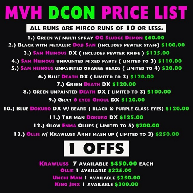 In what has got to be one of the most killer selection of toys we’ve seen to date, Rich Montanari Jr over at Mutant Vinyl Hardcore has just revealed a huge line-up of Designer Con exclusives… attendees beware, you’re going to be leaving penniless when you see what’s up for grabs! Featuring a monumental total of 13 micro runs (all of editions of 10 or under) and 10 one-offs, the crazy list includes unpainted Sam Heinous’, the Tar Man Dokuro DX, an Ollie/Krawlus mash-up, plus the first ever Krawlus hand paints. Up for grabs via a lottery system at the event, Rich has stated that in the very unlikely event of anything not selling, we can expect it in the MVH online store soon after…