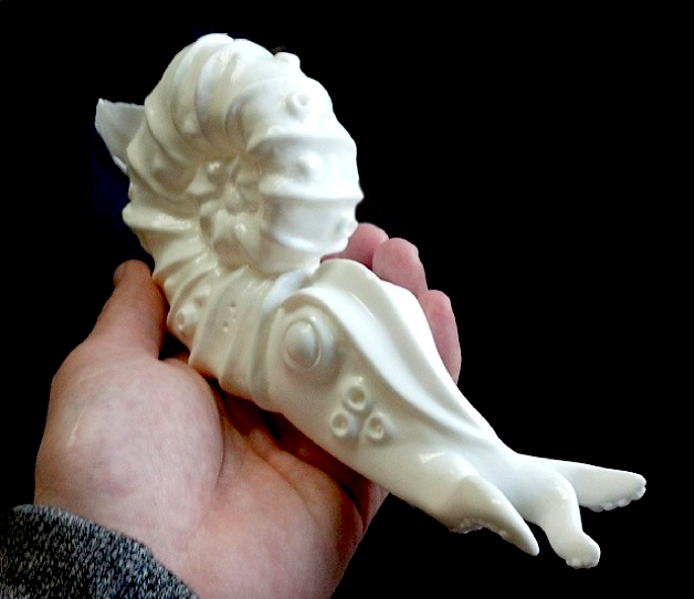 Originally teased back in August, it would appear that Mechavirus‘ sea-dwelling kaiju, the Ammonaito, has finally made the leap to sofubi! After countless resin customs and painted runs, the tentacled beast has been completely re-tooled for the new medium, featuring a slightly upscaled body, tighter detailing and a much more dynamic pose. Revealed here as a blank white test shot, we’ll be keeping our fingers crossed that the first full release will be touching down shortly. Interested parties can keep up to date by following the Mechavirus Instagram feed here…