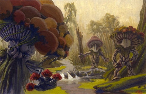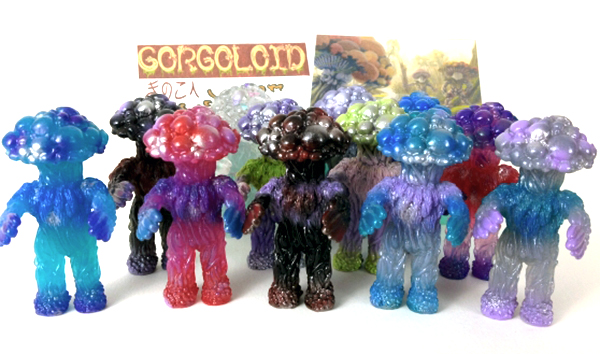 Following last week’s sell out showing at Monsterkolor Studios, it’s back into the studio for Gorgoloid, as he proudly presents the debut of an all new batch of figures… the Mushroom People! Created as homage to one of his all time favourite sources of inspiration, Matango, and out of a general interest in mycology mythology, the mini mushroom kaiju stands at around 2.75″ of solid, hand cast resin. Limited to a batch of 12 one-off Monster Kolor dyed variations (with the exception of 1 clear), each comes signed and bagged with header art from Marcus Gannuscio. Touching down in the Gorgoloid store this Monday, November 18th at 6pm Pacific time, pricing is still to be confirmed…