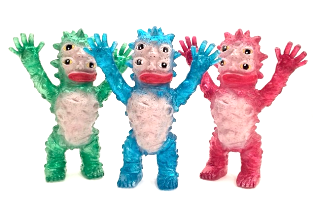 Teased here earlier in the week, Cop A Squat Toys‘ latest ¡Viva Occult! figure, NapNapNap, will be touching down in-store today (11/17) at 3pm Eastern time! A loving tribute to Shigeru’s 4 Eyed Blue Garamon Nag, the 4″ tall figure has been hand sculpt and cast in resin by the artist, coming with two sets of googly eyes embedded in the head. Produced in a variety of one-off tinted clears (NOT the previously stated Garamon metallic blue), complete with flesh and lipstick red sprays, each figure is due to come bagged with a screen printed header for $55 a piece…