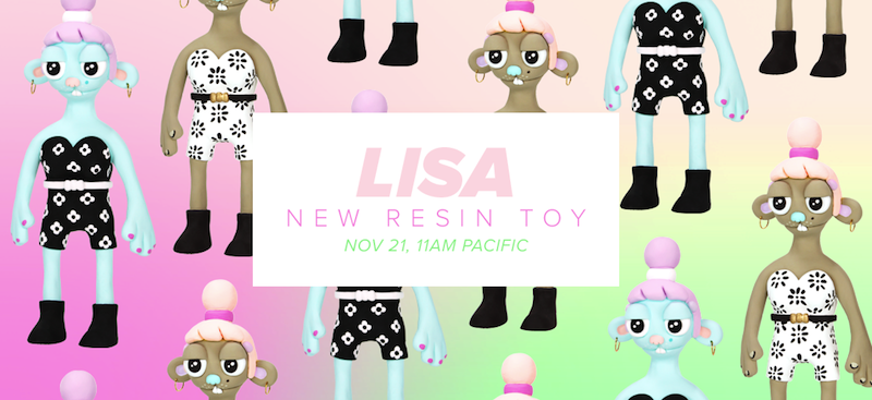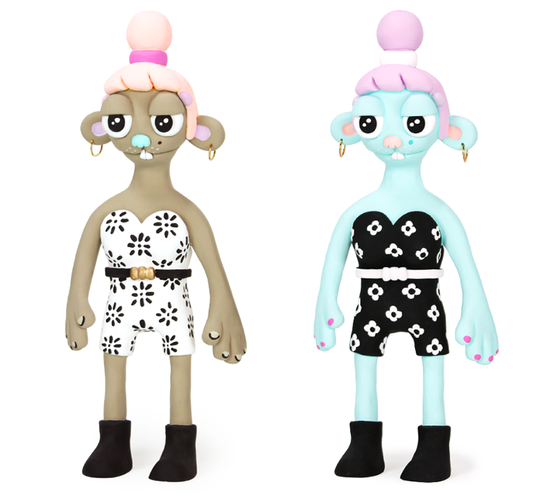 Artist Jon Knox is proud to present the latest addition to his ever growing family of resins, the adorable Lisa! Hand moulded and cast in a polyurethane resin from an original sculpture, the piece stands at around 9″ tall, coming complete with gold hoop accessories. Initially available in 2 hand painted colourways, “Blue” and “Peach”, the pair will be touching down in Knox’s store this Thursday, November 21st at 11am Pacific time for $95 each. Quantities for both will be limited, so be sure to mark the time in your calendars to avoid disappointment!