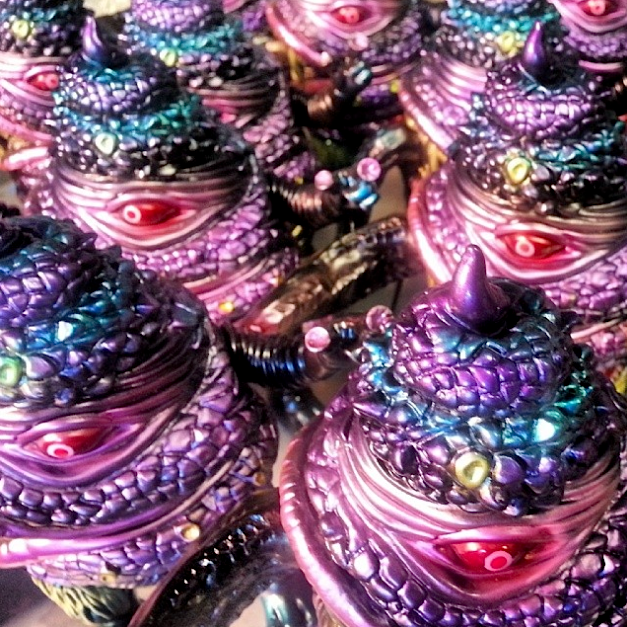 Wasting no time since DCon, Paul Kaiju has just revealed that a new Unchiman run will be up for grabs soon! Cast in a black soft vinyl this time around, the glorious mass of eyes and flesh has been given a metallic pink base, complete with purple, blue, red and gold sprays. Release date, edition size and pricing are all still forthcoming at the moment, so be sure to keep a close eye on PK’s Instagram feed here for more details soon…