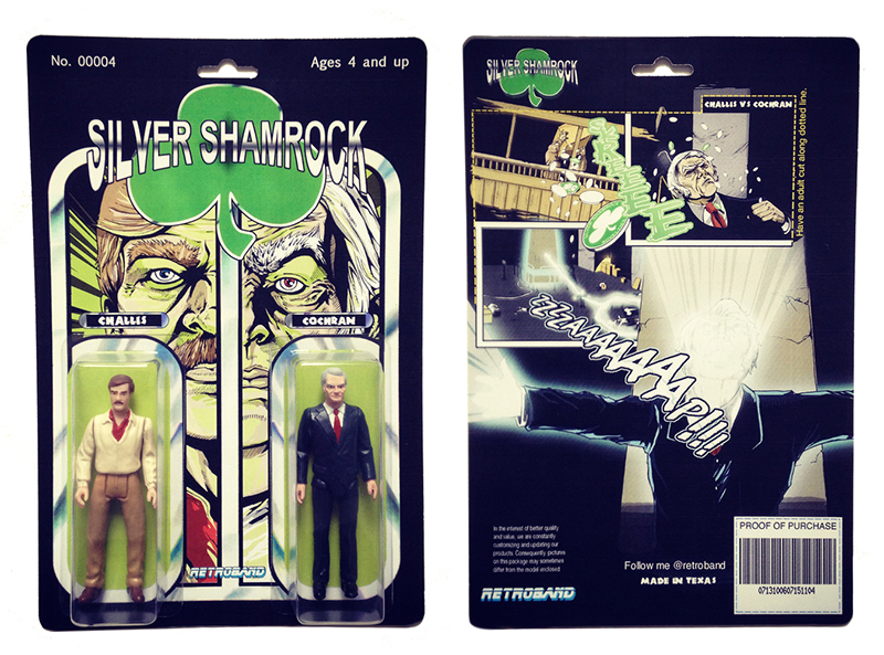 Following the release of Skeleton, Pumpkin and Witch, Retroband returns to cult horror Halloween 3 for one last release… the Silver Shamrock “Final Battle” 2 pack! Featuring the film’s main protagonist Dr Challis alongside the evil Cochran of the Silver Shamrock Novelties Factory (Bemused?! Check out the film’s plot here), the pair have been kit-bashed and resculpted from a variety of vintage 3.75″ action figures, coming cast in resin and hand painted by the artist. Double blister packed on a beautifully illustrated, traditional UV coated 6×9” cardback, the “Final Battle” is up for grabs in the Retroband store right here for $130 plus shipping…