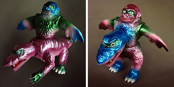 Whilst we won’t pretend to know much about Amapro outside of their work with Grumble Toys, their latest release, Goseimaju, is just too crazy to ignore… From what we can gather, the series appears to consist of a variety of different custom one-off configurations, with the soft vinyl figures featuring chest busting heads, grafted bodies and winged apes that would leave even the most dubious of animal testers feeling squeamish! Releasing at the Doki Doki Osaka Sofubi Event last weekend in a Frankenruge-inspired mix of metallic green, blue and purple sprays on pink vinyl, the remaining 2 pieces, 13Go and 26Go (pictured), are currently up for grabs through forwarding service M-World for 7,800yen (approx. $80) and 8,800yen (approx. $90) respectively. Hit them up at m-world-service@dream.jp with any enquiries…