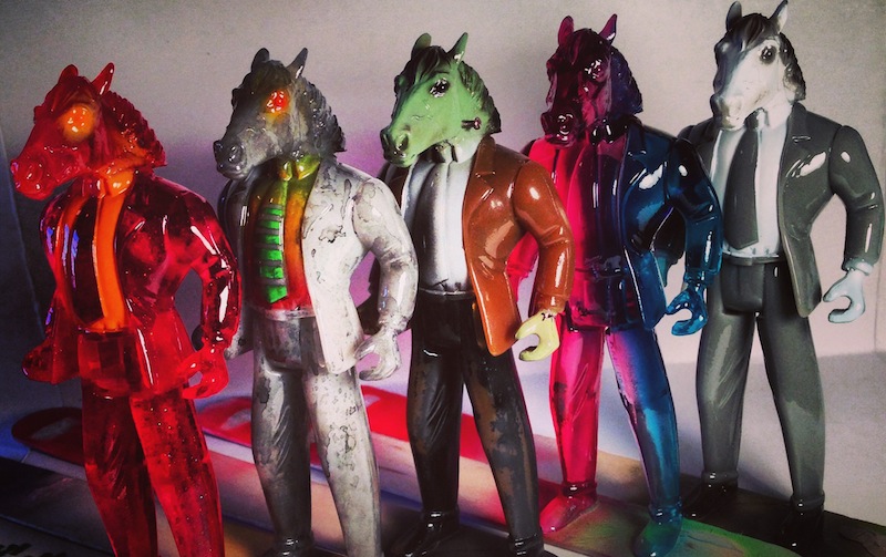 Mike Woods over at Falcontoys has teamed up with Bob242 for the release of his latest collaborative project, the Happyman resin figure! Paying tribute to Sparklehorse front man Mark Linkous, the awesome 3.75″ figure was kit-bashed and resculpted by Bob, taking inspiration from the late singer’s attire in the promo shots for the single Happy Man. Bob kindly shares some background info on the design- “Mark would appear in promo photos with a suit and a white horse head mask. This predated the horse head meme. Linkous had a special attachment to the outdoors and a fascination with horses. The Happy Man figures honor Mark and his music. Sometimes strange and unnerving, sometimes beautiful and lucid, his words and sounds still haunt the hearts of many of his fans. These figures try to capture the imagination and spirit of Mark. He is greatly missed and I hoped to offer a fan’s farewell with art. I also hoped other fans would see and enjoy this. It also provided the opportunity for people not familiar with Mark’s work to pick up a Sparklehorse album and enjoy.” Hand cast, painted and packaged by Falcontoys, the ‘inaction’ resin figures have been limited to an edition of 15 one-off designs, ranging from slick clears, realistic monotones and the odd parody thrown in for good measure. Priced at just $35 each plus shipping, the Happymen will be touching down in the Bob242 store this Friday, December 13th at 5pm Eastern time…