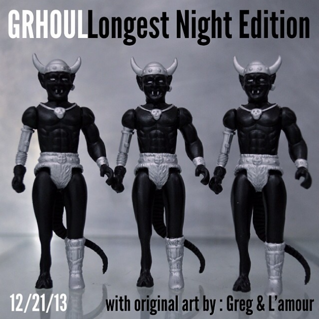 Celebrating the winter solstice in style this weekend, Healeymade has just revealed that he will be offering up a super-limited batch of “Longest Night” edition Grhouls! Cast in a sleek black resin with silver hand painted detailing, the super-limited batch of 3.75″ action figures are due to come packed with a header a little different from the standard Healeymade fare, this time around coming with art from Greg Rivera (Mishka) and L’amour Supreme! Touching down in the Healeymade store this Saturday, December 21st, keep track of the Healeymade IG feed here for full release details and pricing soon…